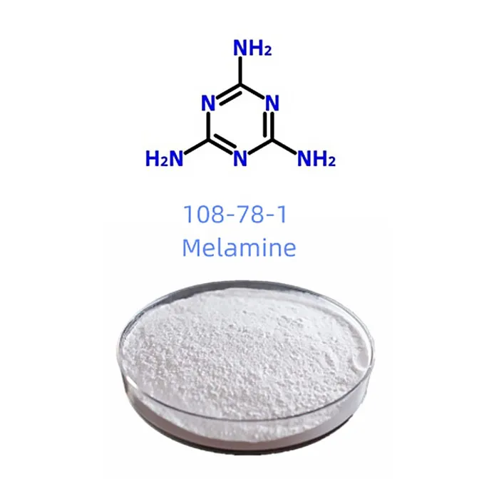 Melamine (CAS {108-78-1) yog cov mis dawb huv monoclin Cov qauv molecular muaj cov nplhaib triazine thiab peb pawg amino, thiab yog ib yam zoo.