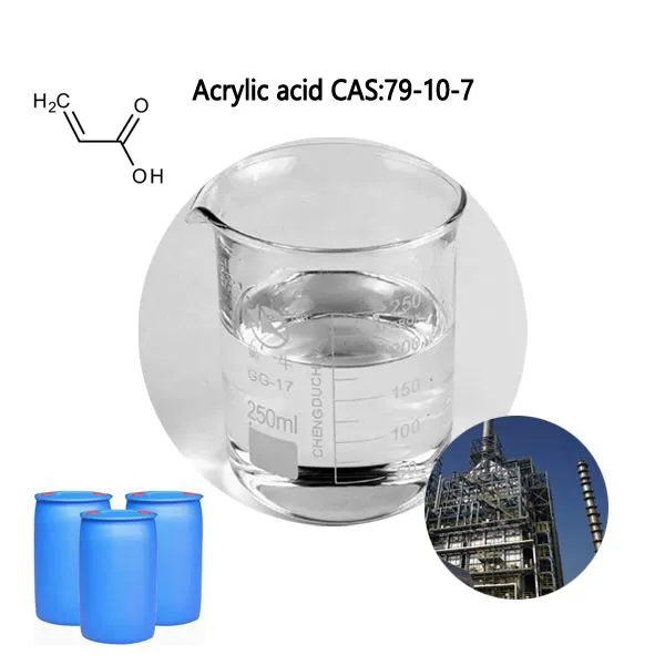 Acrylic Acid (AA) yog cov kua xim tsis muaj xim nrog cov ntxhiab tsw ntxhiab, corrosive, thiab muaj zog acidic. Nws yog soluble hauv dej, ethanol, thiab ether, nrog rau hauv benzene, acetone, thiab chloroform. Nws yog siv rau hauv cov dej tsis zoo, cov nplaum nplaum, thiab cov sealants industries.