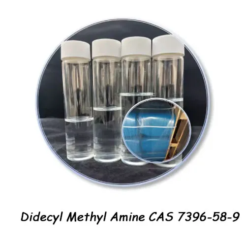 Didecylmethylamine, tseem hu ua N-Methyldidecylamine, yog ib qho organic amine compound. Nws feem ntau yog xim tsis muaj xim rau lub teeb daj oily kua ntawm chav tsev kub. Nws muaj ib tug tshwj xeeb alkaline tsw ntawm amine tshuaj. Qhov ceev yog li ntawm 0.81 - 0.83 g / cm³ (25℃), thiab qhov kub ntawm qhov kub yog li ntawm 250 - 280℃(nws yuav decompose nyob rau hauv ib txwm siab thiab yuav tsum tau nqus distillation). Nws yog me ntsis soluble hauv dej thiab yooj yim soluble hauv cov kuab tshuaj organic xws li ethanol, ether, thiab chloroform. Nws ruaj khov hauv huab cua tab sis yuav tsum tsis txhob sib cuag nrog cov oxidants muaj zog. Nws tuaj yeem decompose ntawm qhov kub thiab txias. Raws li tertiary amine compound, nws tuaj yeem koom nrog cov tshuaj tiv thaiv organic xws li quaternization thiab acylation. Cov khoom lag luam feem ntau yuav tsum tau muab kaw thiab khaws cia rau hauv qhov chaw txias thiab qhuav kom tsis txhob ya raws lossis oxidation.